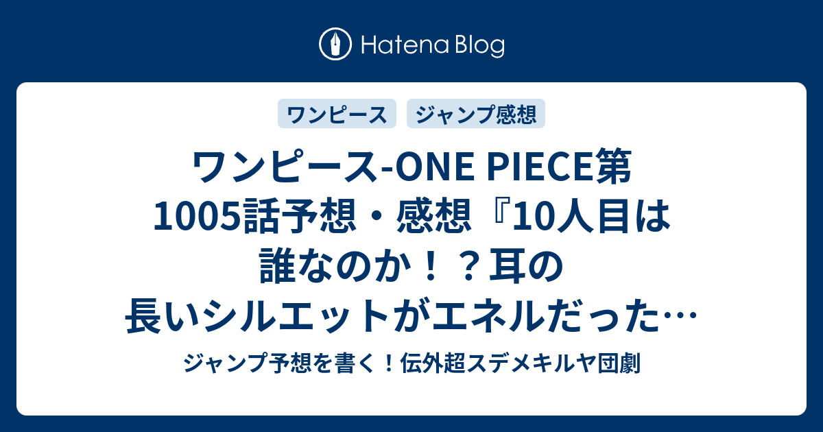 ワンピース One Piece第1005話予想 感想 10人目は誰なのか 耳の長いシルエットがエネルだったら悶絶 次号休載で掲載は13号 きびだんご 尾田栄一郎 の次回 ジャンプ11号21年 Wj ジャンプ予想を書く 伝外超スデメキルヤ団劇